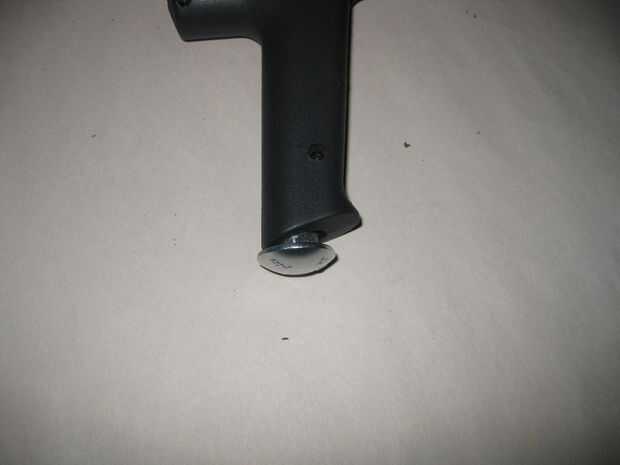 Ahora, mientras que el elemento de calefacción, la dejé en, usted no tiene a, añade peso decente me gustan mis juguetes a UMF un poco más a ellos. A peso para que usted no escoja para arriba y listo, oh sólo un juguete, a pesar de que es. Así que bajamos a la tienda y encontré un tornillo del carro trozos grandes. Tenía que ahuecar la manija un poco para hacer espacio para él, pero un poco más tiempo con mi cuchillo y un archivo lo tenían rodeado, en ningún momento.