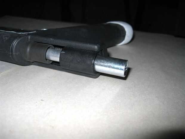Originalmente tuve corte hacia abajo para quedar al ras con la parte posterior de la botella cuando lo tenía insertado, pero cuando pongo la camisa de él para hacerlo encajar mejor, no ir todo el camino, casi a mitad de la manga. Usted siempre podría limar el interior de la botella, pero me gustó cómo veía mejor esta manera así que salí como una agradable sorpresa.