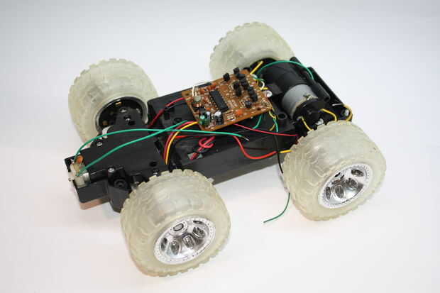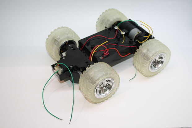 La parte delantera de la RC tiene un solenoide de dirección y la parte trasera tiene un trasero volante motor.