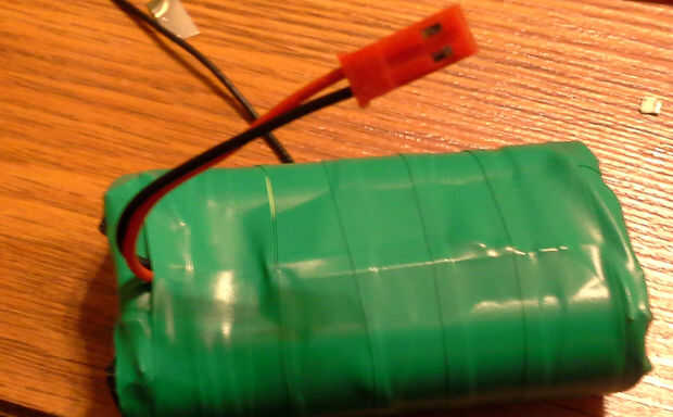 Ahora puede momificar su paquete de la batería con cinta aislante. Esto no es realmente necesario si tienes todos los contactos de aislamiento. Lo hice por si acaso. El paquete resultante vino a ser algo más grueso que el original. Tuve que dejar cubierta de plástico de la batería por lo que encajaría en mi unidad.