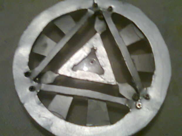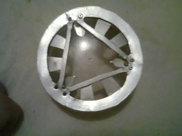 el primero que tienes que hacer es hacer todas las cosas que necesitas por ejemplo la salida cubran y pegarlo en un círculo acrilico y bien y poner algunos tornillos pequeños para hacerlo más realista, entonces dentro del acrilico tienes que poner el resto de cosas, el pequeño triángulo y las otras cosas.
