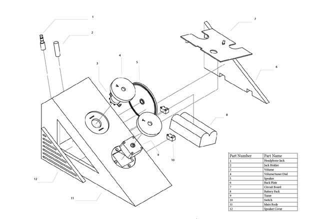 Los siguientes diagramas muestran las partes y sus ubicaciones originales en el diseño. Imagen uno es el cuerpo principal y es la imagen dos. Las únicas partes que no son los cables.