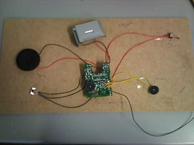 El circuito principal se mantuvo unido a la cara del dictáfono porque es más sencillo simplemente ampliar los botones en lugar de hacer y colocar nuevos.