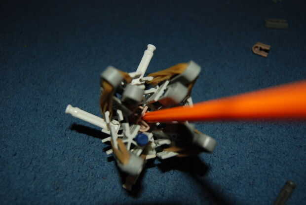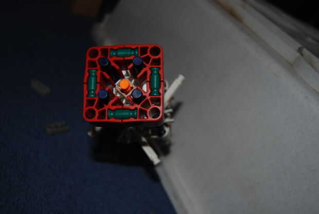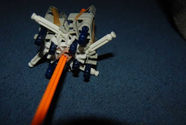 5. poner a dos distanciadores azul en el extremo y otro clip de tan