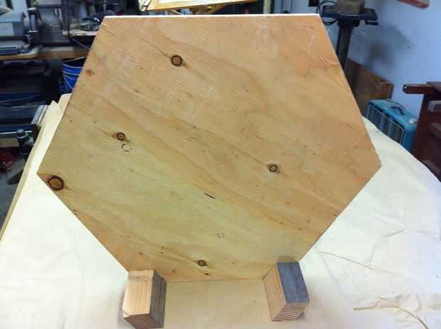 A continuación, arrancó tablas de 2 "x 6" en tiras de medición de 2" en un lado con 2 ángulos de 60 grados de ser de oposición. Los paralelogramos que fueron cortados en bloques de 3" para servir como topes para los paneles de madera contrachapada. Espaciados los paneles de la primeros y la últimos 2" del extremo de los tableros laterales y los paneles de mediados unos 4' de cada extremo.