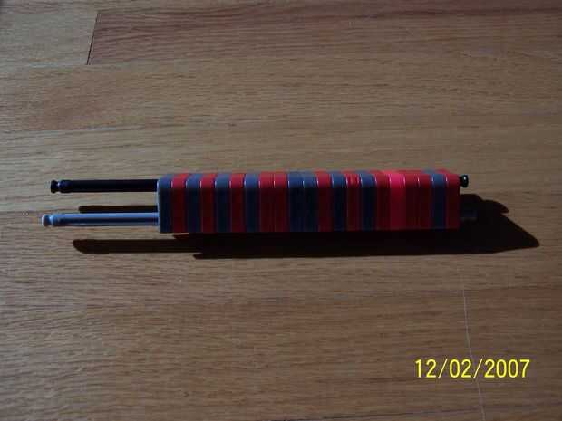 esta es un arma fuerte KVG. Puede tirar nada de lo que cabe en el barril. Utiliza solamente pedazos de KVG básica y una buena banda de goma. Si utiliza barras azul como munición seguramente conseguirá su objetivo. Este es mi primer instructivo sea ta