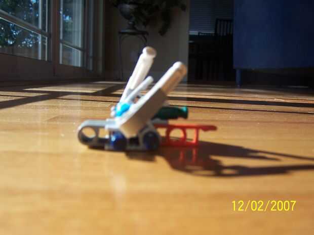 esta es un arma fuerte KVG. Puede tirar nada de lo que cabe en el barril. Utiliza solamente pedazos de KVG básica y una buena banda de goma. Si utiliza barras azul como munición seguramente conseguirá su objetivo. Este es mi primer instructivo sea ta