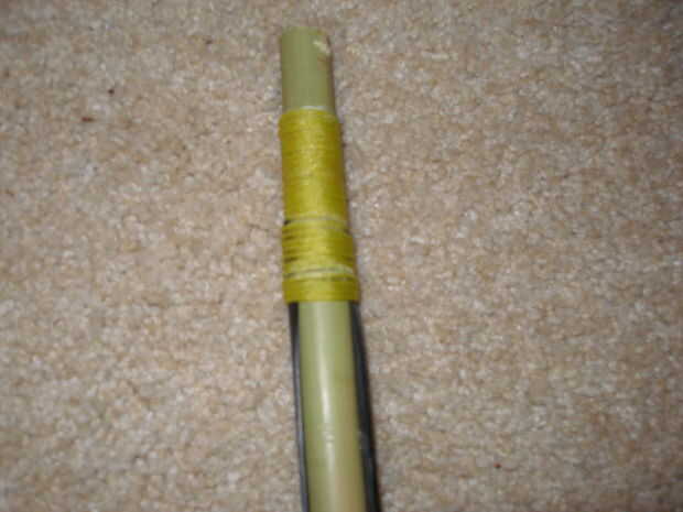 a continuación, tomar el hilo de nylon y comenzar envolviendo firmemente desde el punto de puntuación a una pulgada o tan apartadas del extremo del bambú/del tubo de pvc. Super pegamento para evitar desmoronamiento, o derretir el final, o ambos! < _ >