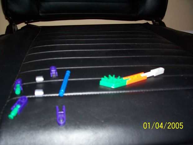 esto es lo que vamos a crear:Paso 1: partes Esto es lo que necesitamos:-34 conectores amarillos-4 conectores verdes-3 conectores naranja-1 conector blanco-3 conectores gris-2 conectores rojo-2 barras amarillas-5 barras gris-4 varillas blanco-6 barras