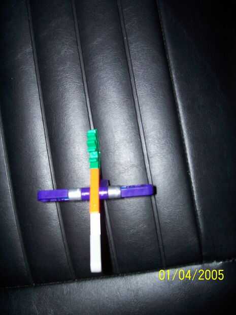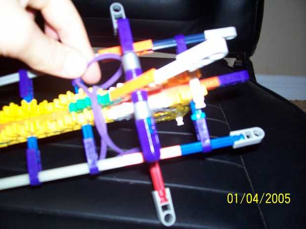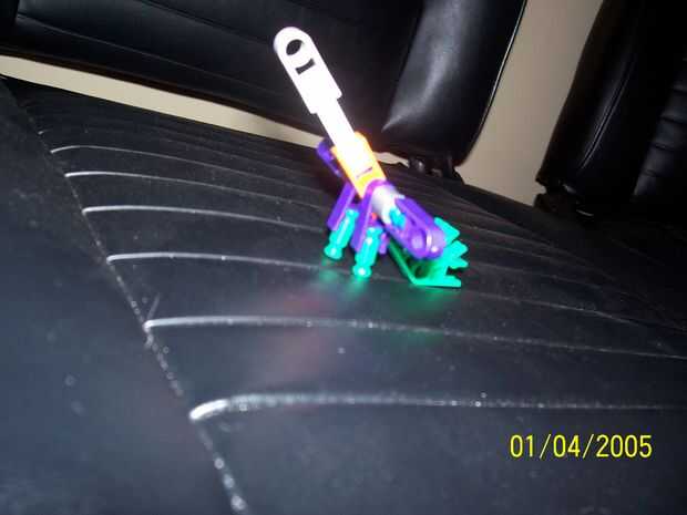 Paso 1: El barril yo llevo largo naranja KVG y conector 2 y hace un tres a un lado y tres en el otro la tomé 2 KVG pequeños y ponerlo en la parte inferiorPaso 2: El mango Tomé diez KVG púrpura y 18 conectores junté 8 gris conectores y la púrpura knex