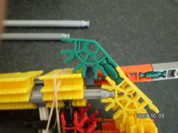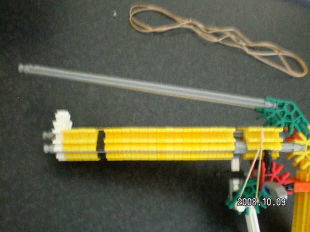 Paso 1: El barril yo llevo largo naranja KVG y conector 2 y hace un tres a un lado y tres en el otro la tomé 2 KVG pequeños y ponerlo en la parte inferiorPaso 2: El mango Tomé diez KVG púrpura y 18 conectores junté 8 gris conectores y la púrpura knex