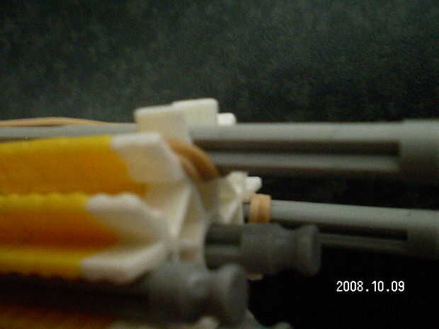 tiene dos barrilesmuy precisa y brotes bastante lejos sobre 50 si te pero bastantes bandas de goma entiene un alcance atiene una estructura muy fuerte y puede manejar mucha fuerzaPaso 1: mango 20 círculos rojos de 1/46 varillas blanco4 barras de amar