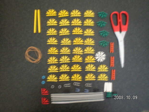 dispara fácilmente 20ftPros-potente-precisa-fáciles de hacerContras-disco duro cargarPaso 1: conteo de piezasBlancos copos de nieve (13)semicírculos amarillo (7)conectores naranja (1)barras grises (2)barras amarillas (2)espaciadores de plata (3)espac