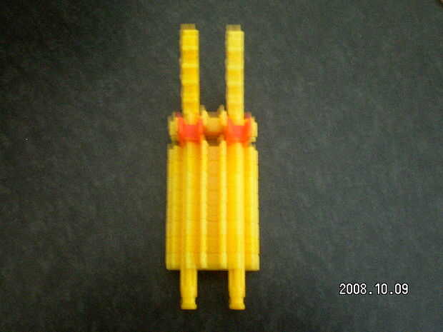 tiene dos barrilesmuy precisa y brotes bastante lejos sobre 50 si te pero bastantes bandas de goma entiene un alcance atiene una estructura muy fuerte y puede manejar mucha fuerzaPaso 1: mango 20 círculos rojos de 1/46 varillas blanco4 barras de amar