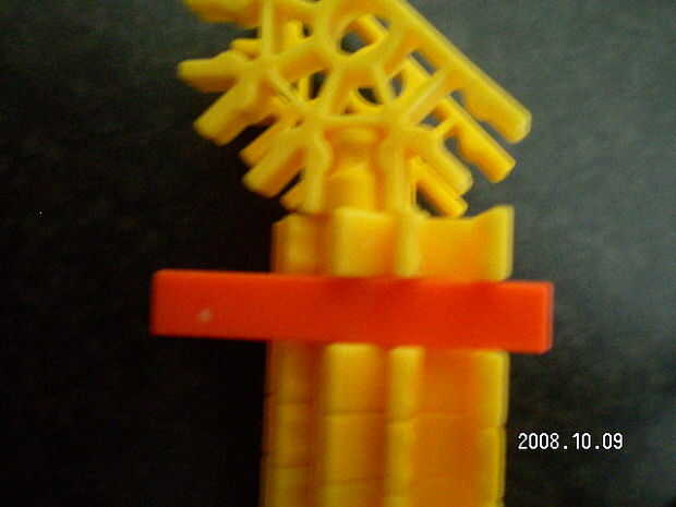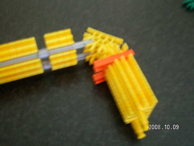 Paso 1: El barril yo llevo largo naranja KVG y conector 2 y hace un tres a un lado y tres en el otro la tomé 2 KVG pequeños y ponerlo en la parte inferiorPaso 2: El mango Tomé diez KVG púrpura y 18 conectores junté 8 gris conectores y la púrpura knex