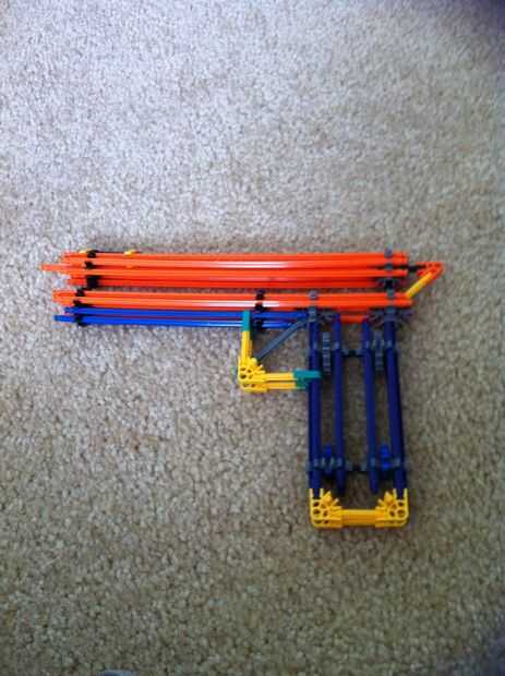 esto es lo que vamos a crear:Paso 1: partes Esto es lo que necesitamos:-34 conectores amarillos-4 conectores verdes-3 conectores naranja-1 conector blanco-3 conectores gris-2 conectores rojo-2 barras amarillas-5 barras gris-4 varillas blanco-6 barras
