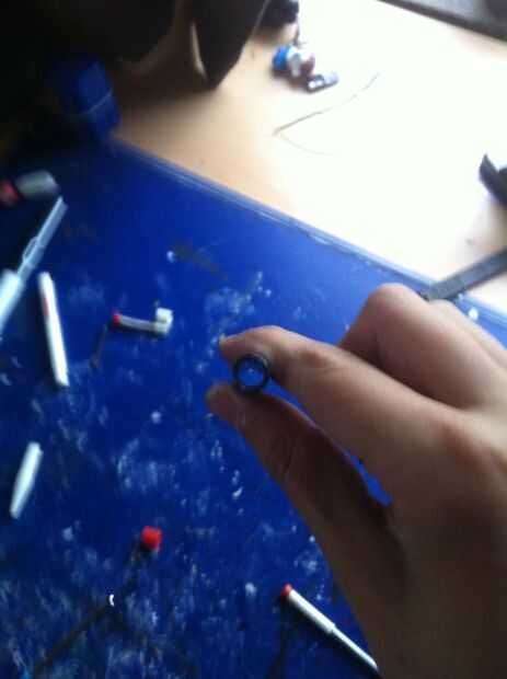 Nehmt den Kugelschreiber auseinander und bohrt en den anderen Deckel ein Loch así groß das eine-s Kugel durchlässt