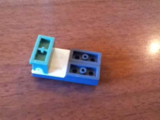 1: Ponga el 2 x 4 plano en el ladrillo bisagra y luego debajo pone los 2 pisos de 1 x 2