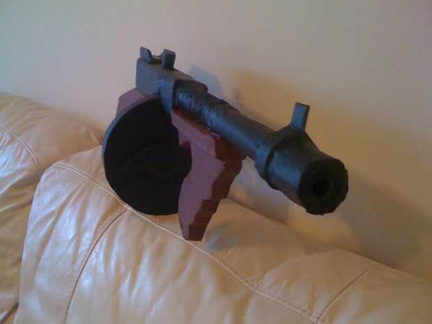Todas las piezas son entonces caliente pegado juntos, el mango frontal tiene dos barras de plástico (de un colgador de ropa) pegado en la parte superior y luego pegado en el cuerpo principal para la fuerza. Donde termina el mango frontal, hay un pequeño - 1/4 en-cojín pegado en lugar para mantener el agarre del cañón