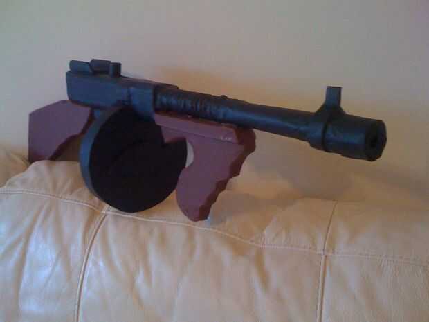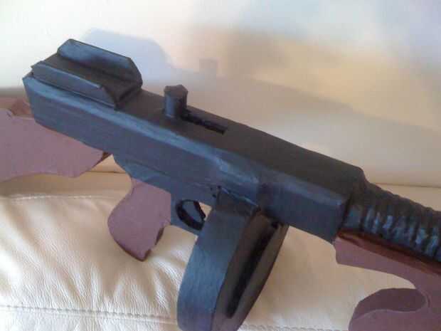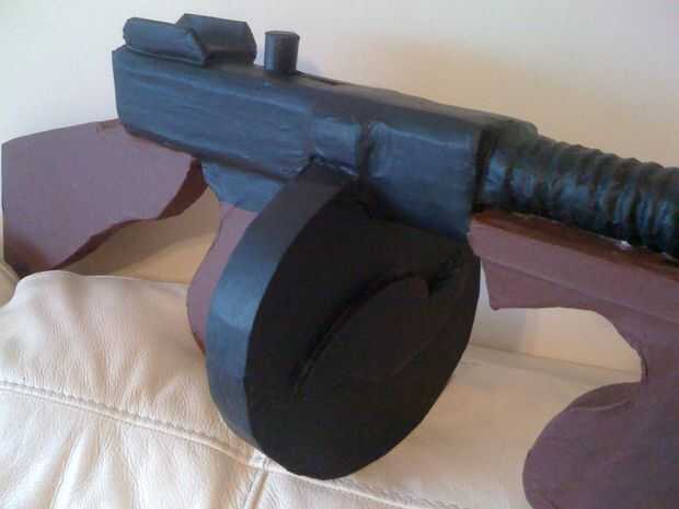 El cañón es solo shets de periódico, rodado hasta el espesor deseado es alcanzado y encolado en caliente en el cuerpo. El detalle en el barril es hecho por gruesa cuerda alrededor de la bobina en espiral.