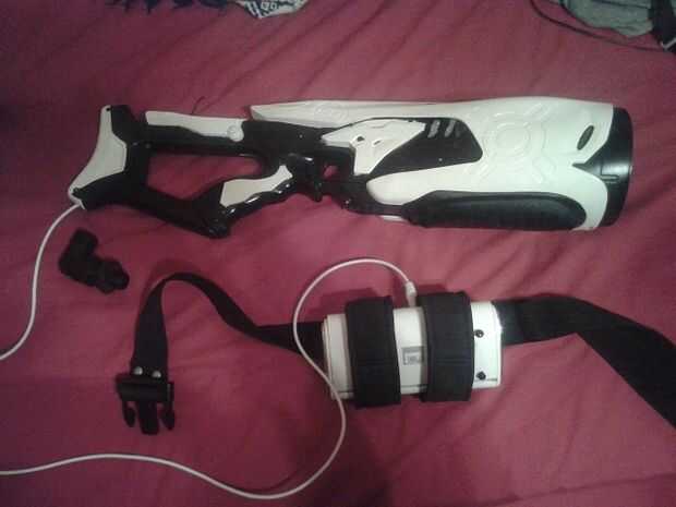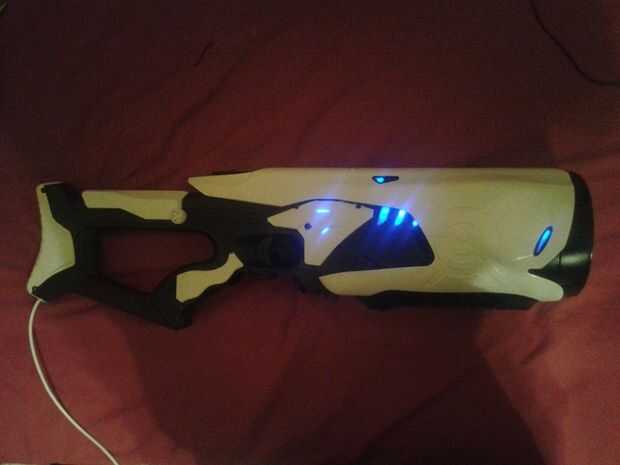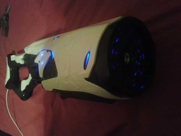 Después de muchos intentos, finalmente lo conseguí todo enganchada encima de la derecha. Ahora con cada tirón del disparador, las luces se encienden, los brotes de puntero láser y los sonidos que he instalado en el módulo, activar. Puesto que era demasiado pequeño, funcionó una línea en el conector del módulo a través de la pistola y el back-end y conectado a unos altavoces el altavoz en el módulo encontré en un mercadillo. Envueltos con unas tiras de velcro y una correa. Todo hecho!