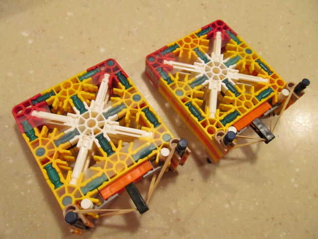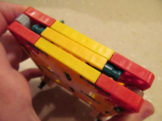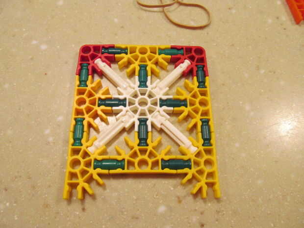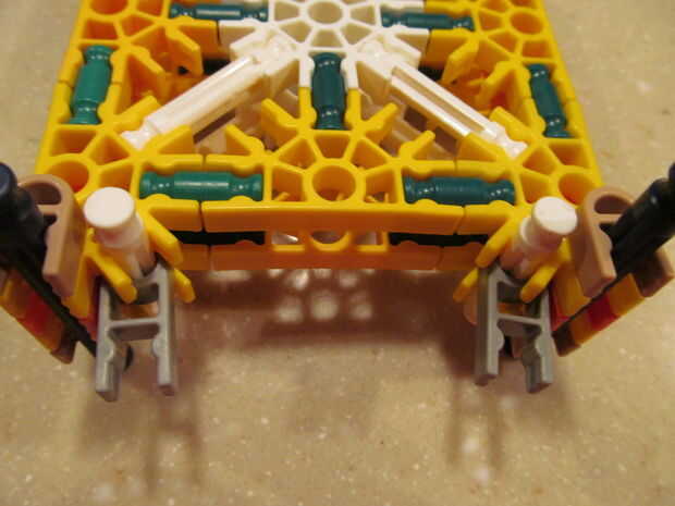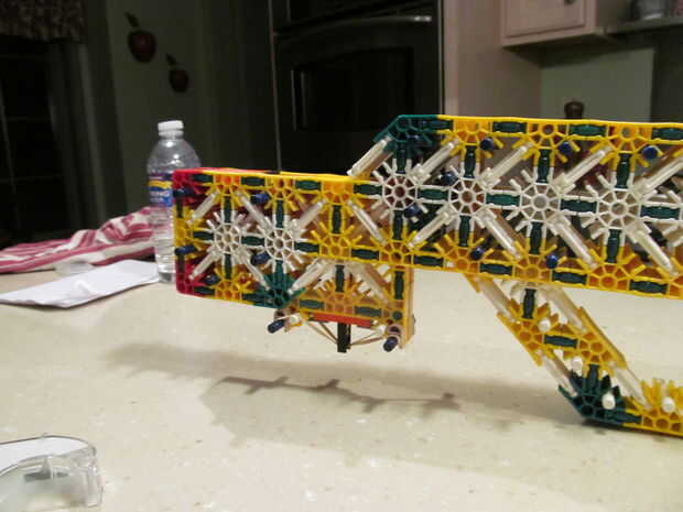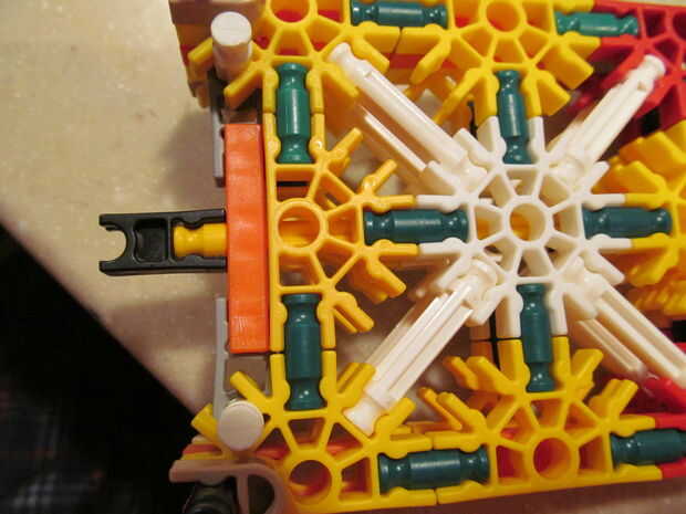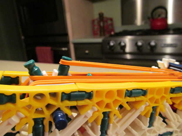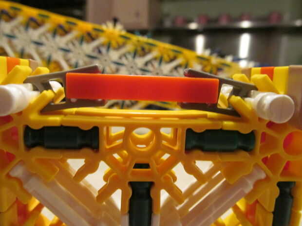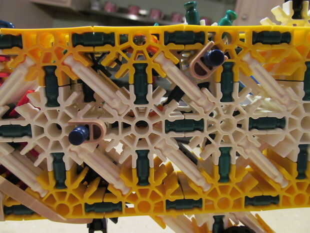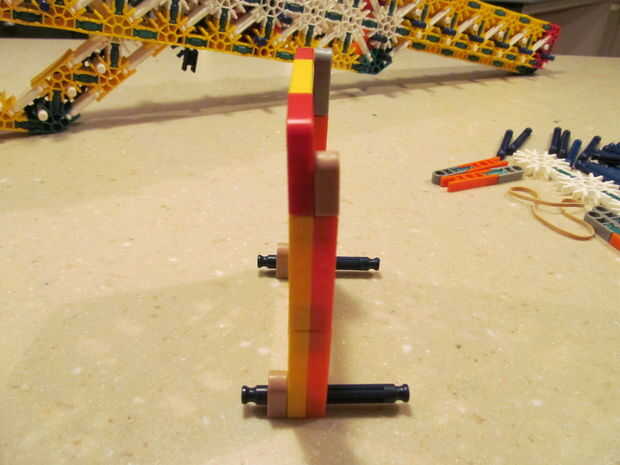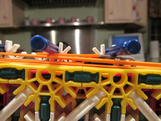 32. tirar hacia atrás las bandas una por una, manteniéndolos bajo las barras azules y ponerlos en el trinquete. La forma más sencilla de hacerlo es sacar las tres barras azules a la izquierda del camino y luego tire de las bandas. A medida que agrega más bandas, gire el trinquete hacia atrás. Las bandas se procederán a ir en el arma. Ahora empuje hacia atrás las barras de azul a la derecha y carga su mag (siguiente foto).
