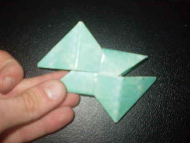 Ahora, meter los ángulos de los triángulos en la pequeña grieta. A continuación Dale la vuelta y hacer lo mismo. Los hecho, Felicidades, y gracias por mirar mi instructable, comenten por favor y dime lo que piensas.