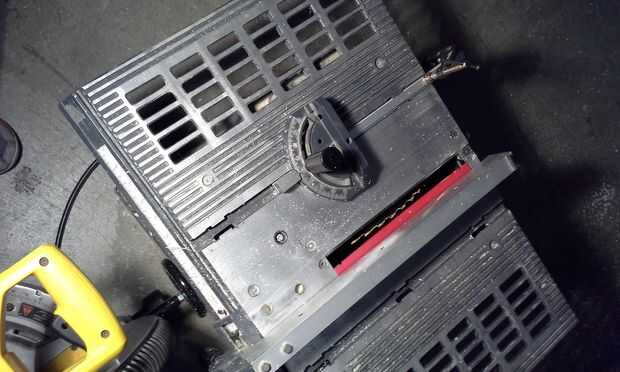 Levante la hoja justo encima de la superficie de la mesa. Tal vez 1/16 de pulgada para empezar.
