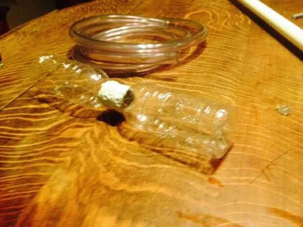 Totalmente cuidado línea hasta la boca de cada botella y asegúrelas con cinta adhesiva bien. Envuelva la cinta como apretado como usted puede conseguir, mantenerlos alineados. Me pareció más fácil que un amigo sosténgalos juntos mientras que los intervenidos.