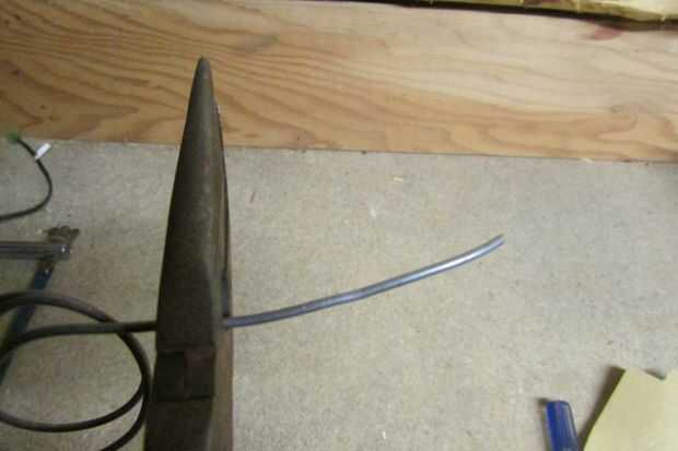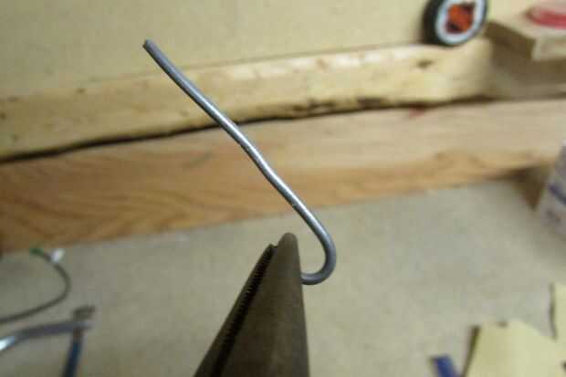 A continuación tome el trozo de alambre y doblar un extremo por lo que parece un gancho, entonces puesto le en el agujero que es perforado previamente sólo con el gancho en la parte superior. Luego tomar el alambre que pone la trampa de ratón y corte por lo que es un poquito más largo que el gancho.