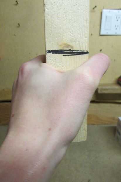 A continuación tienes que hacer el mango. Tome un pedazo de madera que pueden envolver cómodamente la mano alrededor y dibujar una línea sobre que corta apagado.