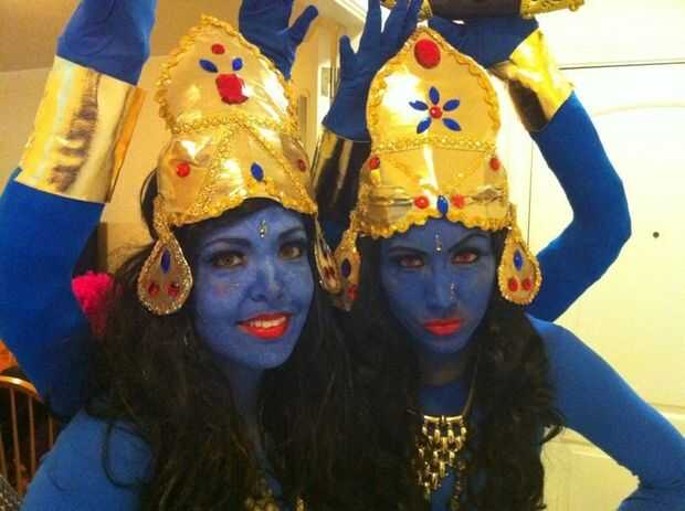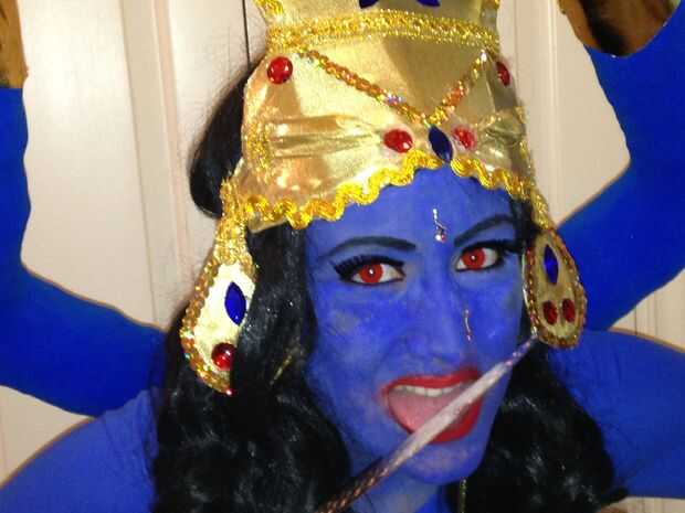WHAT YOU NEEDMAQUILLAJE:Esmalte de uñas azul o verdeAdhesivo quirúrgico de dúo (para pestañas)Trazador de líneas del labio negro, marrón o rojoDelineador de ojos negro y rojoLatigazos del ojoRimel negro o azulAzul crema para la cara (no mostrado aquí