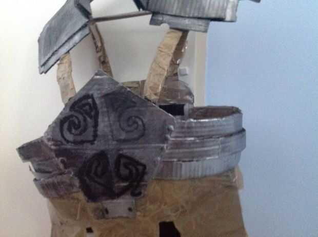 Símbolos de la pintura en el medio del pecho pieza luego tomar su marrón lenguado en agua y aplicar ciertas área s y deje seco entonces tu armadura es terminar lo siento por la falta de foto s hizo este tutorial después de terminar la armadura