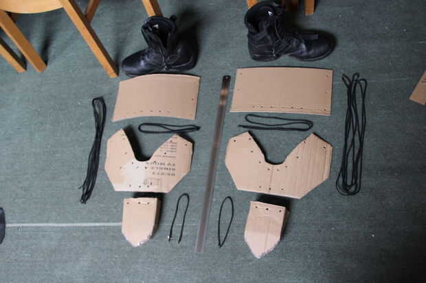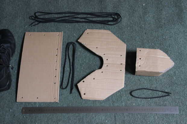 Este es el paso que le explicará todos los agujeros. Los agujeros se utilizan para el cordón las secciones juntas y permitir alguna articulación. Más secciones (en vez de las tres que hice) permitiría que más movimiento pero este proyecto sería una parte menor de la vestimenta de todo y muy mucho de no sería bien visto.