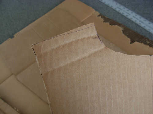 Es más fácil doblar la cartulina si usted anota el interior primero, basta con ejecutar la tapa de una pluma firmemente a lo largo de la línea que queremos doblar en. Una regla rígida ayuda mucho para las puntuaciones que corren diagonalmente a los corrugaciones. Además el área del busto, marcar y doblar los lados y los hombros.