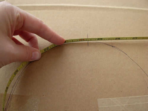 Dibujé un óvalo con una circunferencia de la misma longitud que la medición de la cabeza, que en mi caso era 24". Más cabezas son óvalo formado en cierto grado, usted casi nunca consigue uno muy circular.