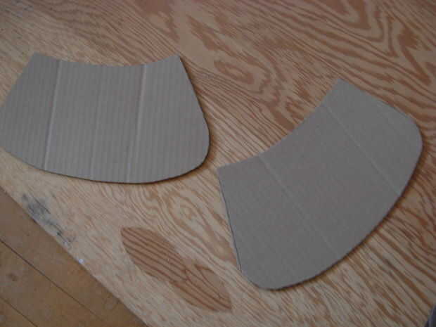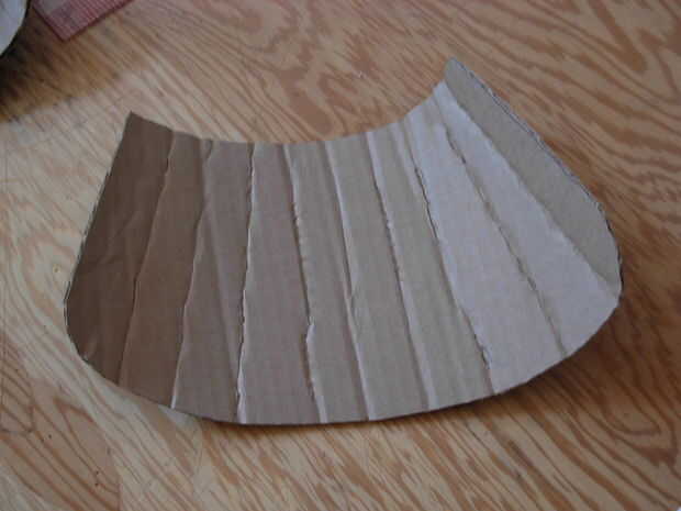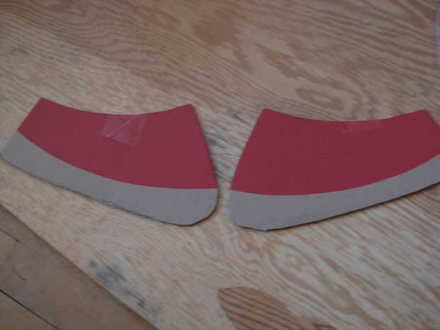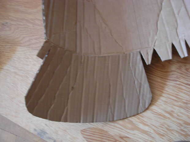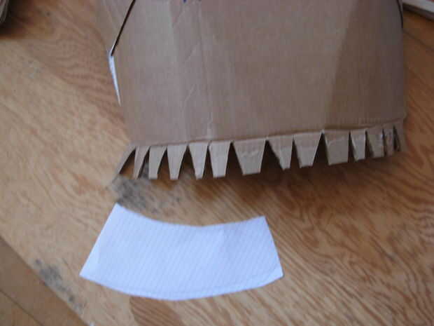 Aquí otra vez tuve que adhiera un pedazo curvo de una pieza recta. La forma de faulds que trabajó en el papel primero, recordar que a fin de que sobresalga, todo tenía que tener una ligera curva. Después de cortar las piezas, también cortar las rebanadas en forma de V conocidas en la franja inferior del frente y detrás las placas para hacer pegando las aletas.