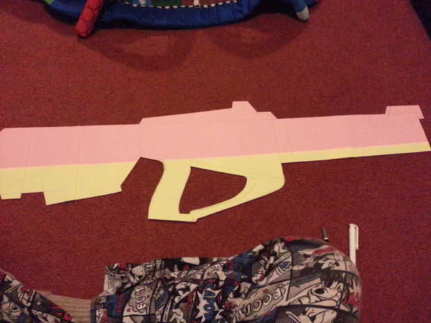 Encontrar la imagen de la pistola que le gustaría hacer. Imprimir y recortar el diseño para crear una plantilla. Coloque la plantilla en espuma eva y dibujar alrededor de ella.