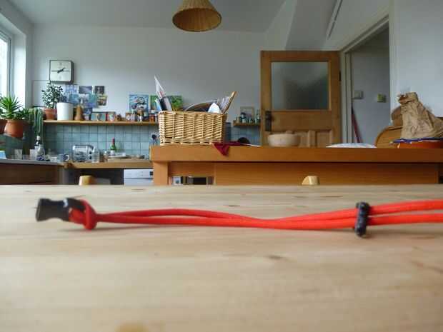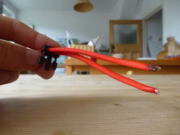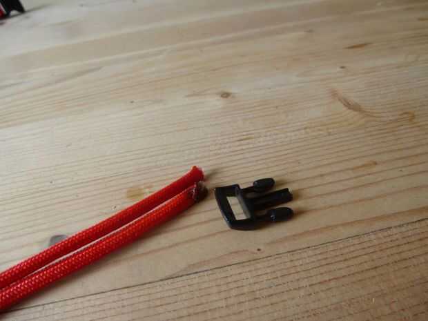 Ahora deberá medir su muñeca. Obtener el extremo restante de la hebilla (Fig. 1) y enrosque en el cable fundido (Foto 2). Tire de la hebilla hacia abajo de la cadena hasta que es alrededor de la figura 3. (puede que necesite alguien que le ayude con esto) Poner la muñeca entre las dos hebillas (si no cabe, empuje la hebilla tridente a lo largo) y tire de la hebilla tridente lo suficiente lo que puede hacer clic en el otro lado. Desabroche la hebilla, sosteniendo el tridente en su lugar. el espacio entre es qué tan amplia es la muñeca.