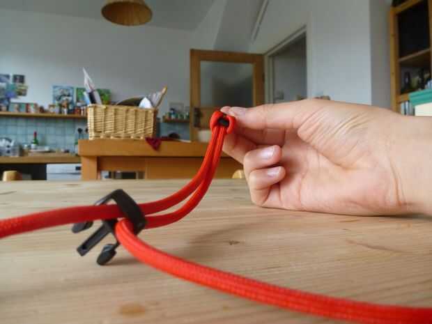 4 agarrar el extremo de la cuerda izquierda y sin cambiar el paso anterior, empuje la cadena a través de debajo el lazo hecho en el 2. (imagen 4)