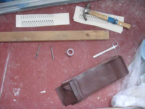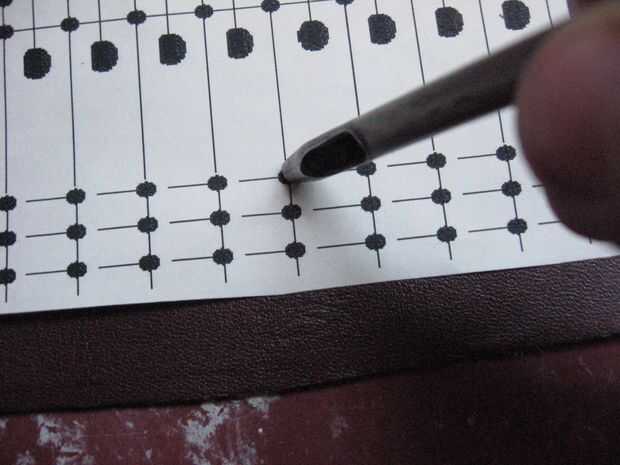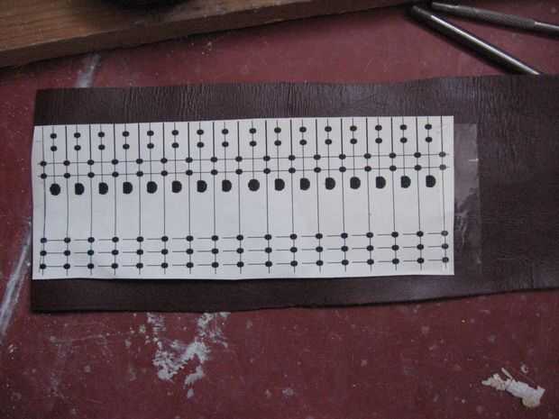 Pegar plantilla para correa de cuero y hacer agujeros.