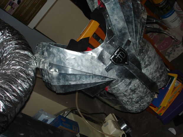 Básicamente la placa de pecho es simplemente un pedazo grande de acero con un agujero para la cabeza. Dibujaré una pequeña cosa de ascii de él