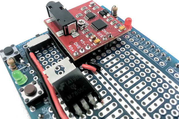 Esto le mostrará cómo crear tu propio robot controlado por bluetooth con efectos de sonido personalizados. Como visto anteriormente, formó a mina como R2D2.Lista de piezas1 Uno de x Arduino1 x Adafruit protector de la onda (tienes que la soldadura es