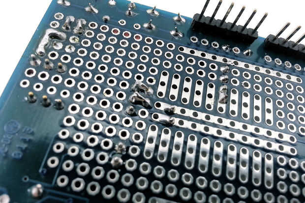 3. El puente de alambre de la soldadura para que la soldadura extiende el gab entero entre las clavijas