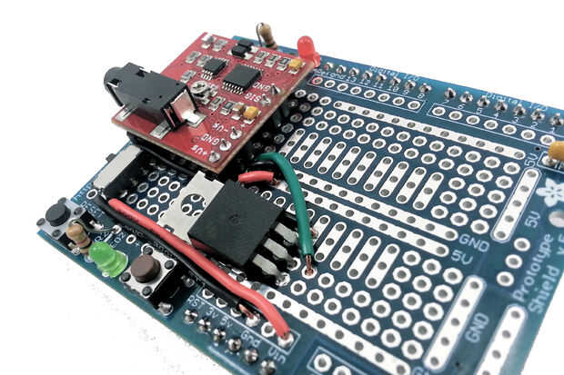 Esto le mostrará cómo crear tu propio robot controlado por bluetooth con efectos de sonido personalizados. Como visto anteriormente, formó a mina como R2D2.Lista de piezas1 Uno de x Arduino1 x Adafruit protector de la onda (tienes que la soldadura es