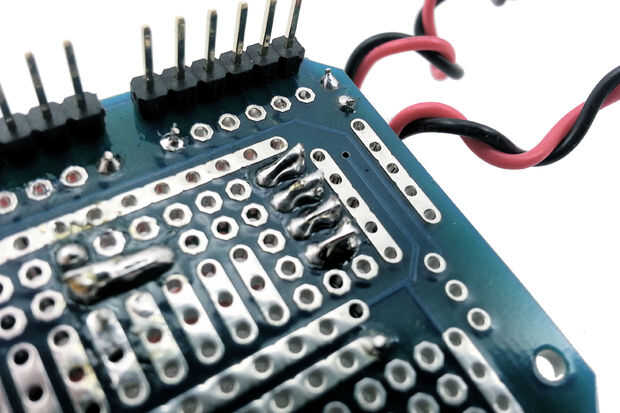 6. El puente de alambre de la soldadura para que la soldadura extiende el gab entero entre las clavijas.