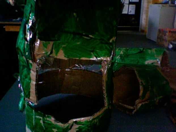 este es mi casco de cartón halo... sé prefieren pepakura, pero para algunas personas que no es un lujo otros tiene... así que decidí hacer uno de cartón... srry por la falta de instrucciones, no pensé hacerlo y instructable hasta que fue a finales...