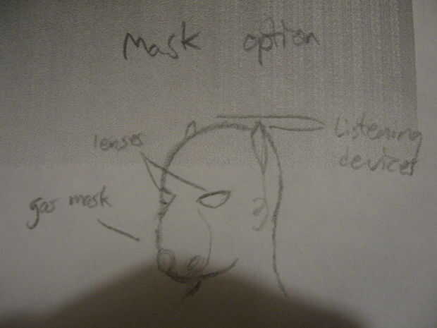 Nota innecesaria: posteriormente desechado el aspecto de "máscara" para la mirada "hecho en una noche".