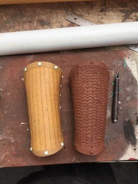Estas son las fotos de mis primeras piezas que fueron todos Worbla. Los detalles fueron puestos con pintura puff y luego pintados encima. El problema con esto era que yo no era feliz con el final y sabía que no se adaptan a mis necesidades...