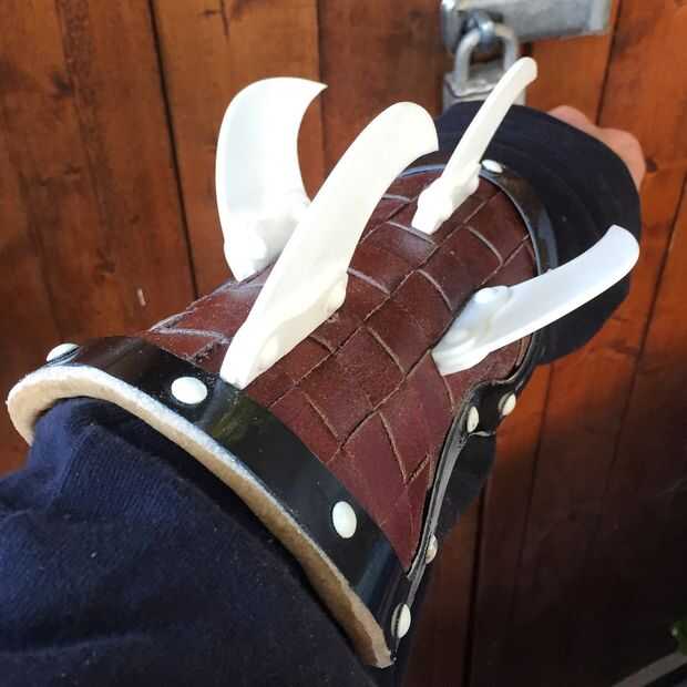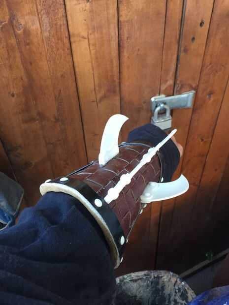 Las láminas se unen por la perforación en las bases de las hojas y se sostienen en lugar con remaches de la parte trasera. Tuve que tener cuidado de no expandir completamente el remache pop como que podría haber roto la hoja base abierta. La cosa agradable sobre el método de remache pop es que tira de la hoja más cercana a la base de la armadura como se expande en la base de la hoja.
